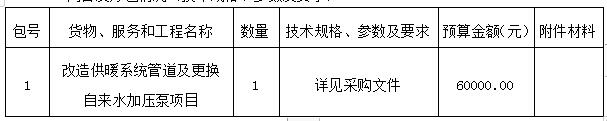 采購項(xiàng)目名稱:改造供暖系統(tǒng)管道及更換自來水加壓泵項(xiàng)目