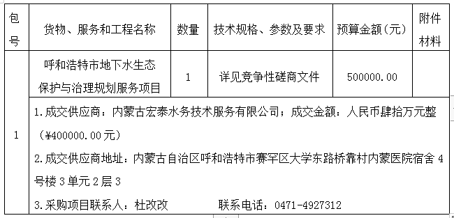 1.采購項目名稱:呼和浩特市水務局地下水生態(tài)保護與治理規(guī)劃服務項目